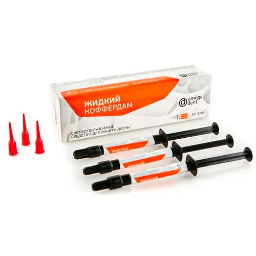 - скрыть шприц и надеть на него канюлю для аппликации. Защитный слой «жидкого коффердама» должен покрывать десневой край шириной не менее чем на 3-4 мм.Нанести материал таким образом, чтобы десневая борозда, межзубные промежутки и твердые ткани зуба, прилегающие к десне, были изолированы.
