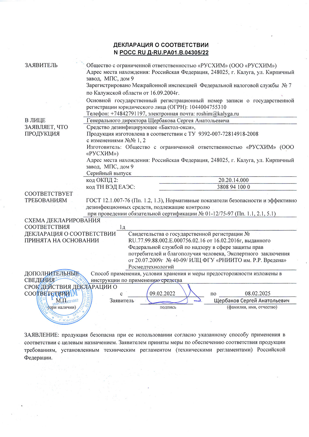 - Алкилдиметилбензиламмоний хлорид (АДБАХ) — 2%