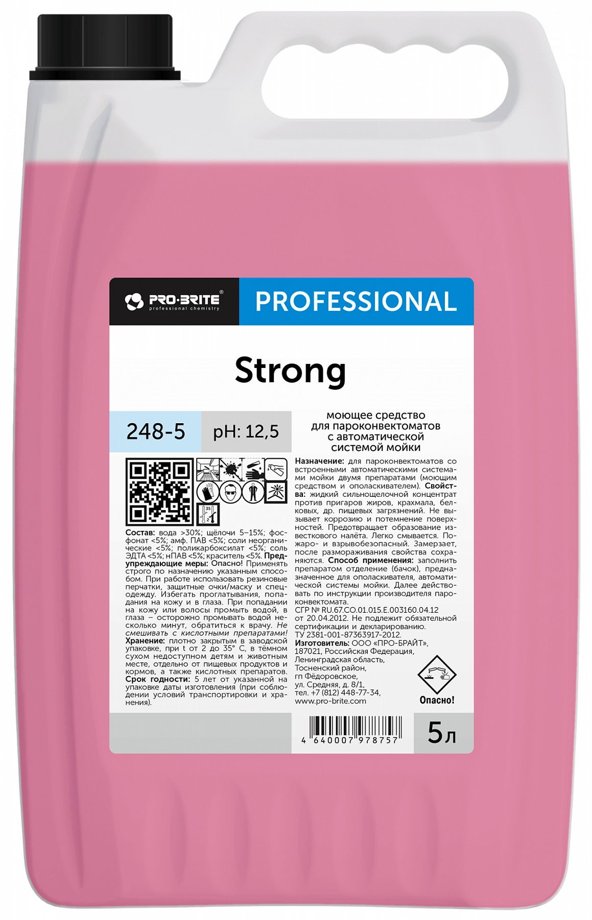 Моющее средство для пароконвектоматов с автоматической системой мойки — жидкий сильнощелочной концентрат для профессионального применения.